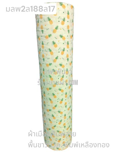 ผ้าเมืองพิมพ์ลาย-พื้นขาว พื้นขาวนวล ลายสับปะรด สีเหลืองทอง