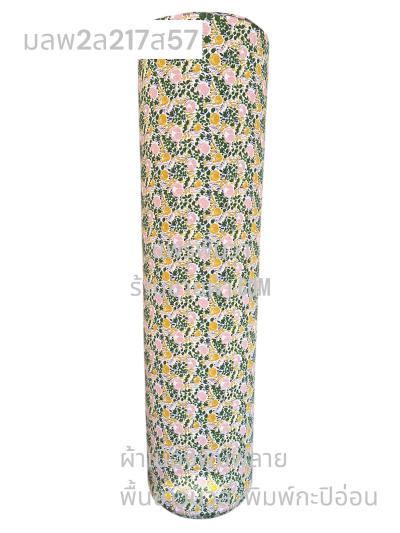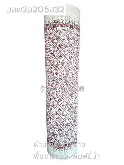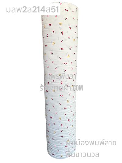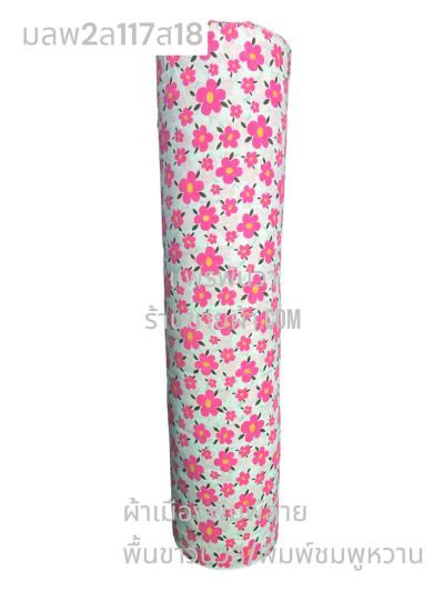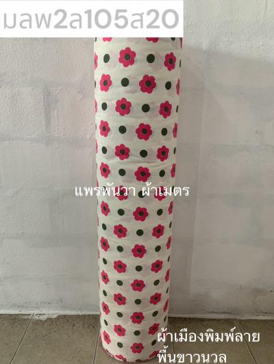 ผ้าเมืองพิมพ์ลาย-พื้นขาว พื้นขาวนวล ลายดอกดวง สีชมพูหวาน