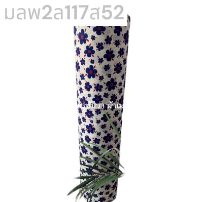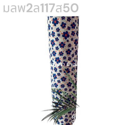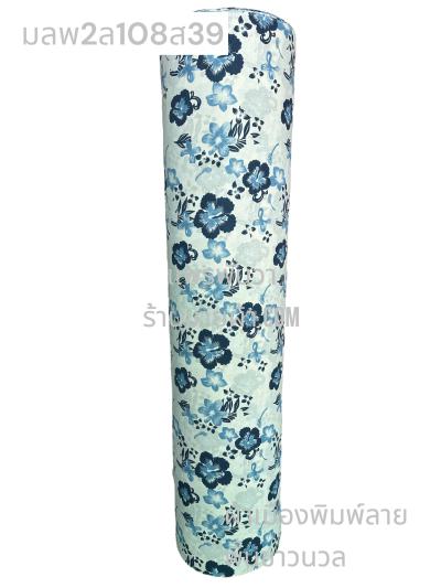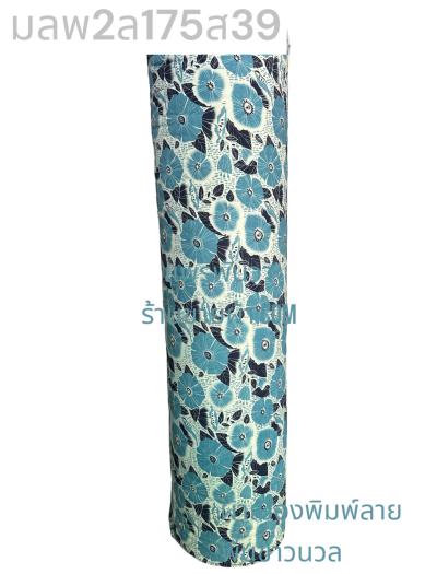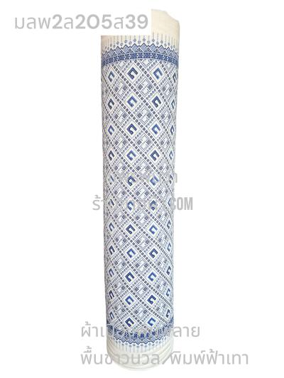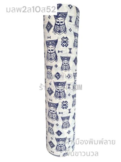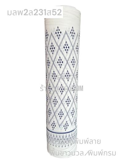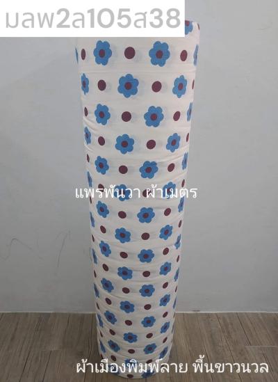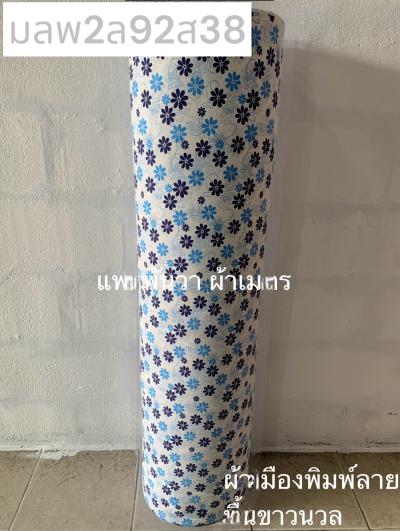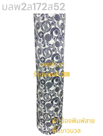 ผ้าเมืองพิมพ์ลาย-พื้นขาว พื้นขาวนวล ลายดอกดวง สีน้ำเงิน