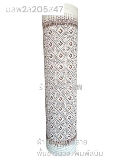 ผ้าเมืองพิมพ์ลาย-พื้นขาว พื้นขาวนวล ลายลายวชิรภักดิ์ สีน้ำตาลสนิม