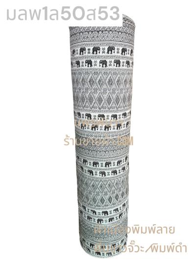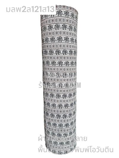 ผ้าเมืองพิมพ์ลาย-พื้นขาว พื้นขาวจั๊วะ ลายช้างผ้าใหม สีดำ