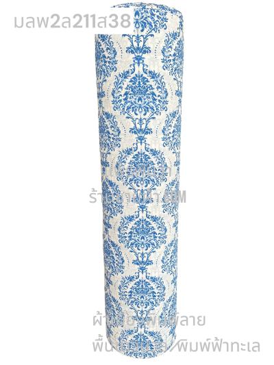 ผ้าเมืองพิมพ์ลาย-พื้นขาว พื้นขาวนวล ลายซาร่า สีฟ้าทะเล