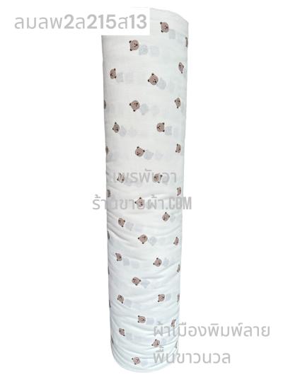 ผ้าเมืองพิมพ์ลาย-พื้นขาว พื้นขาวนวล ลายหน้าหมี สีโอวันตีน