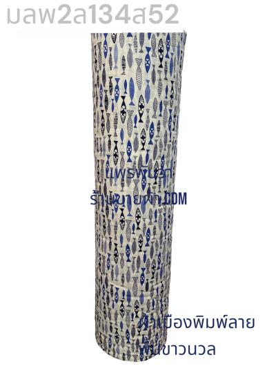 ผ้าเมืองพิมพ์ลาย-พื้นขาว พื้นขาวนวล ลายปลาเล็ก สีกรม