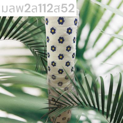 ผ้าเมืองพิมพ์ลาย-พื้นขาว พื้นขาวนวล ลายดอกยิปโซ สีฟ้าทะเล