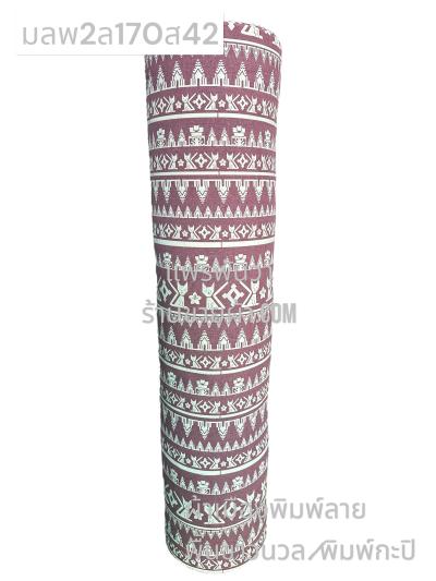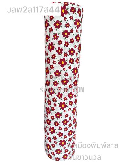 ผ้าเมืองพิมพ์ลาย-พื้นขาว พื้นขาวนวล ลายดอกดวง สีแดงเลือดนก