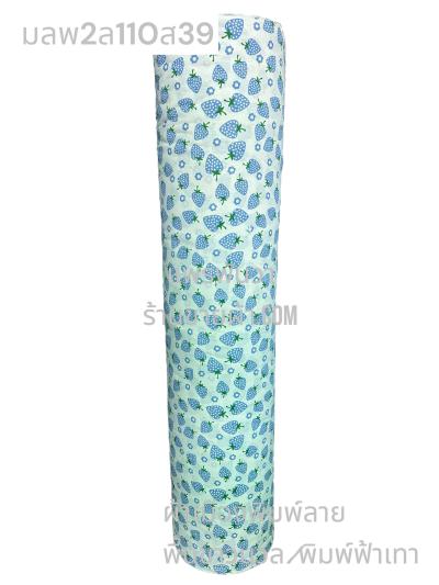 ผ้าเมืองพิมพ์ลาย-พื้นขาว พื้นขาวนวล ลายสตอเบอรี่ สีฟ้าเทา