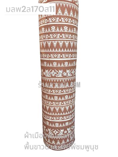 ผ้าเมืองพิมพ์ลาย-พื้นขาว พื้นขาวจั๊วะ ลายช้างผอม สีน้ำตาลเข้ม