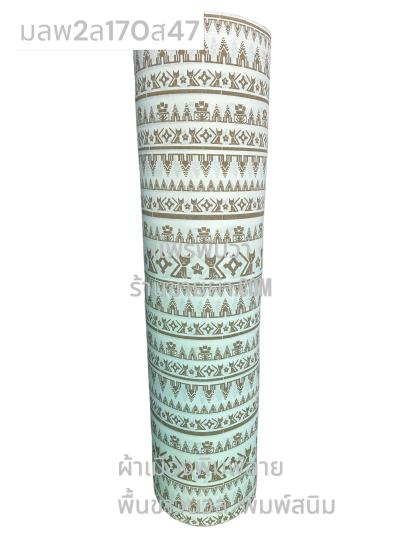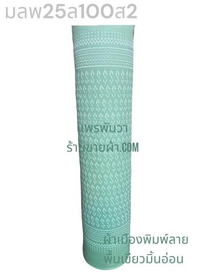 ผ้าเมืองพิมพ์ลาย-พื้นขาว พื้นเขียวมิ้นอ่อน ลายลายขอ S สีขาวนวล
