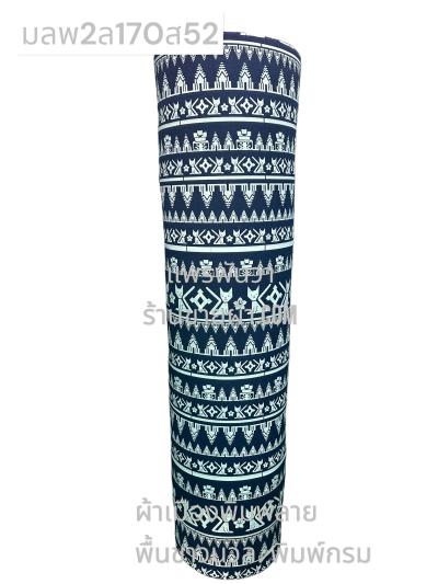 ผ้าเมืองพิมพ์ลาย-พื้นขาว พื้นขาวนวล ลายท่อนอ้อย สีกรม