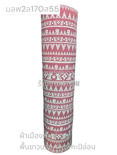 ผ้าเมืองพิมพ์ลาย-พื้นขาว พื้นขาวนวล ลายแค้มปิ้งแนวตั้ง สีแดงเลือดนก
