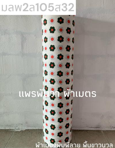 ผ้าเมืองพิมพ์ลาย-พื้นขาว พื้นขาวนวล ลายเดซี มีจุด สีโอรสเข้ม
