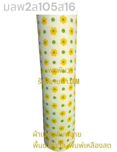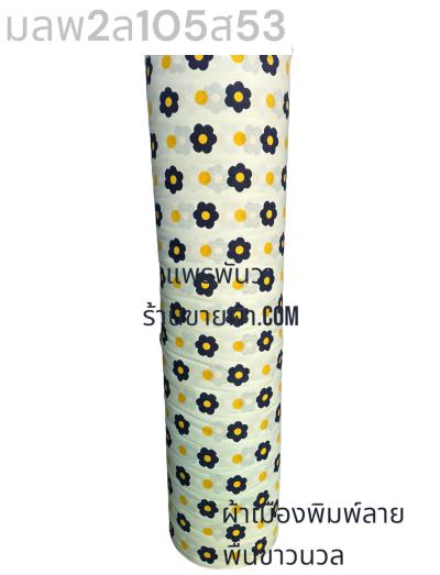 ผ้าเมืองพิมพ์ลาย-พื้นขาว พื้นขาวนวล ลายเดซี มีจุด สีเหลืองสด