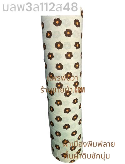 ผ้าเมืองพิมพ์ลาย-พื้นขาว พื้นผ้าดิบ ซักนุ่ม ลายดอกเดซี่ สีน้ำตาลเข้ม