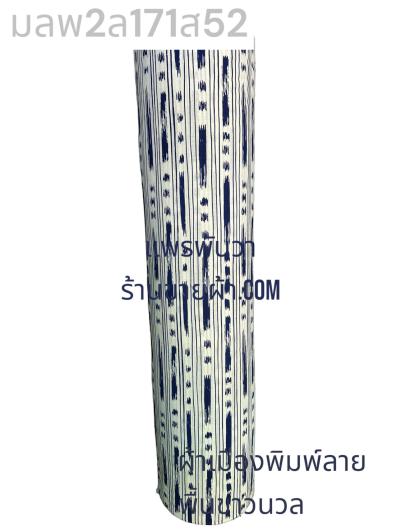 ผ้าเมืองพิมพ์ลาย-พื้นขาว พื้นขาวจั๊วะ ลายบาร์โค้ด สีกรม