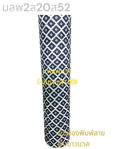 ผ้าเมืองพิมพ์ลาย-พื้นขาว พื้นขาวนวล ลายสี่เหลี่ยม สีกรม