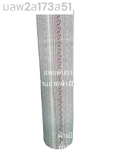 ผ้าเมืองพิมพ์ลาย-พื้นขาว พื้นขาวนวล ลายแค้มปิ้งแนวตั้ง สีเขียวขี้ม้า