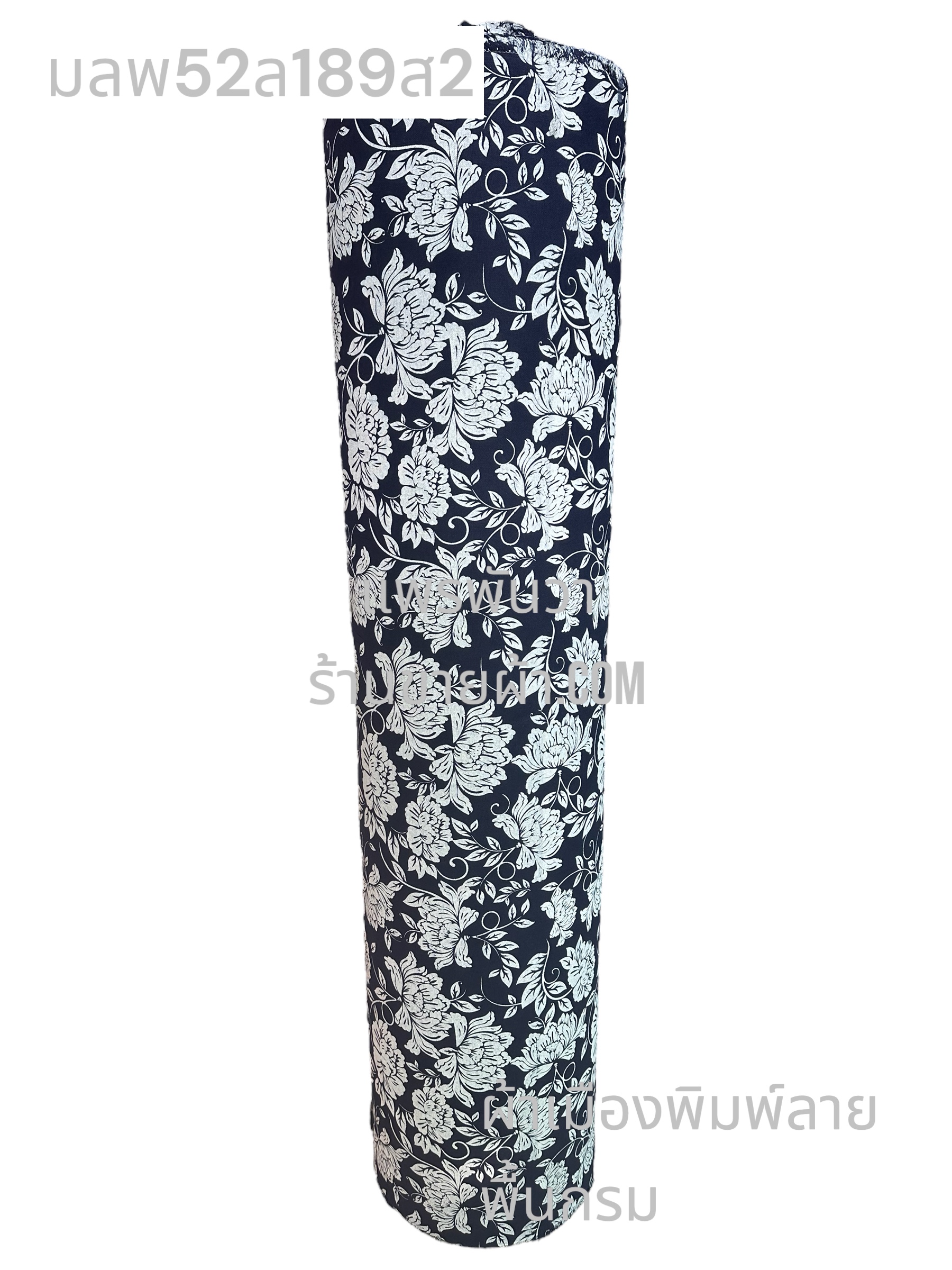 ผ้าเมืองพิมพ์ลาย-พื้นสี พื้นกรม ลายกุหลาบกรม สีขาวนวล