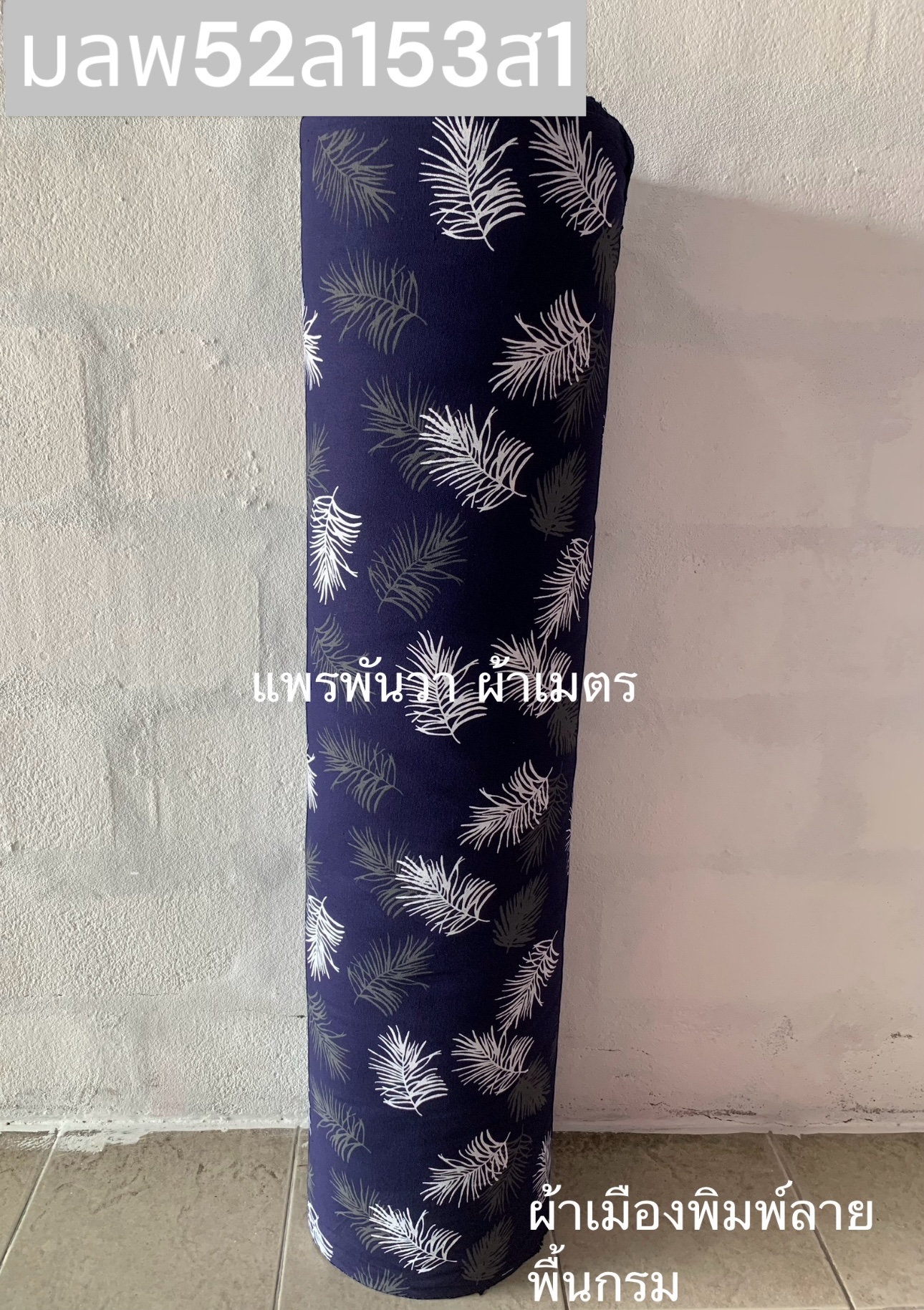 ผ้าเมืองพิมพ์ลาย-พื้นสี พื้นกรม ลายขนไก่ สีขาวจั๊วะ