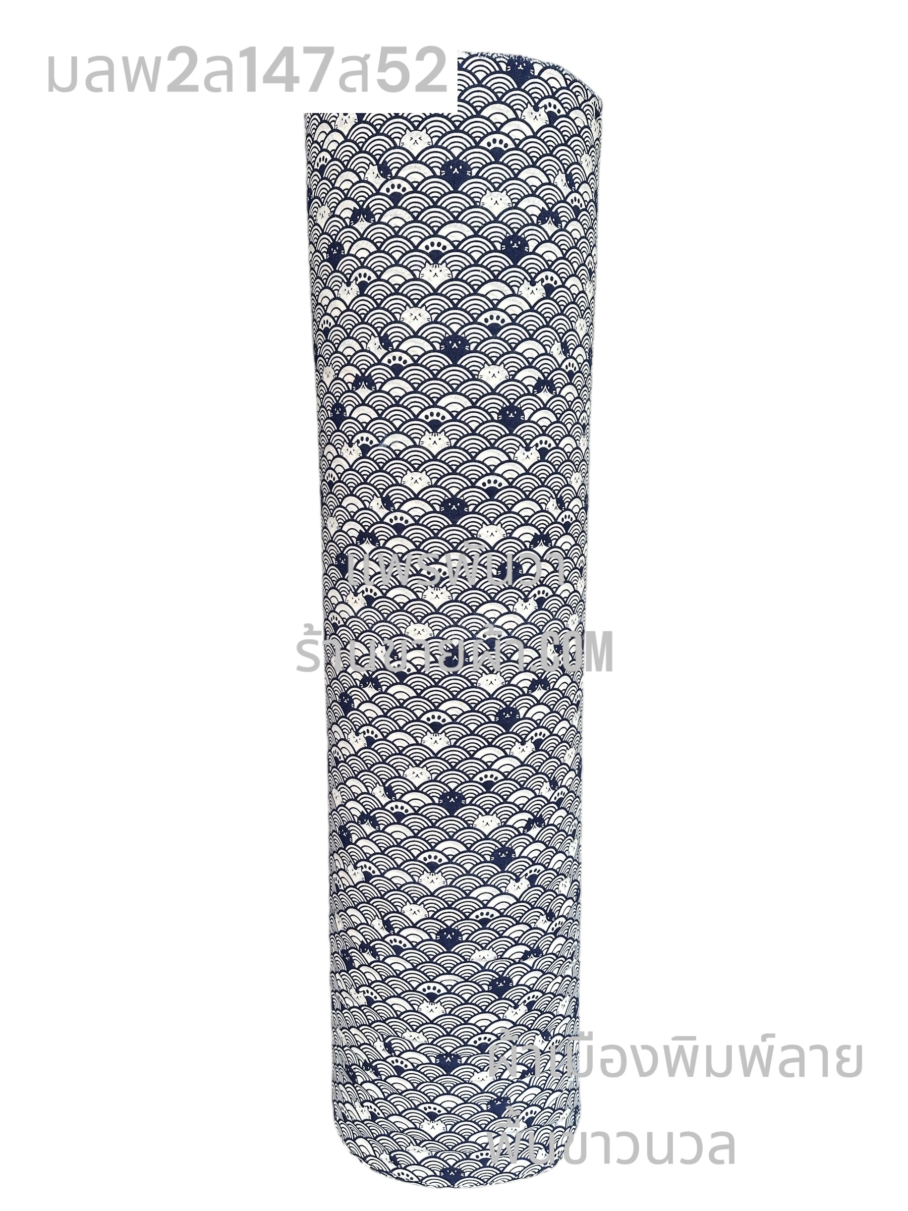 ผ้าเมืองพิมพ์ลาย-พื้นขาว พื้นขาวนวล ลายคลื่นแมวน้ำ สีกรม