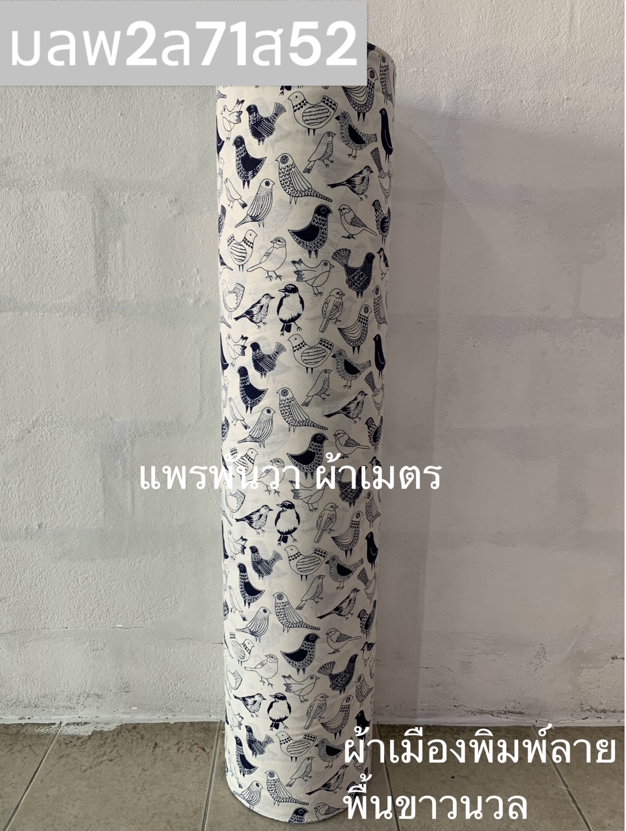 ผ้าเมืองพิมพ์ลาย-พื้นขาว พื้นขาวนวล ลายนก สีกรม