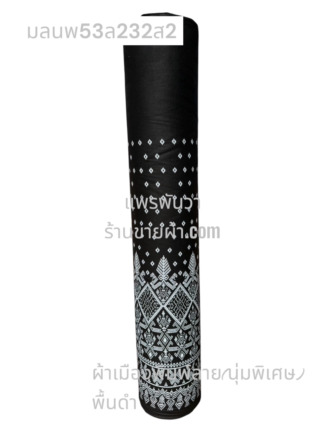ผ้าเมืองพิมพ์ลาย(นุ่มพิเศษ)พื้นดำ พื้นดำ ลายนาค สีขาวนวล