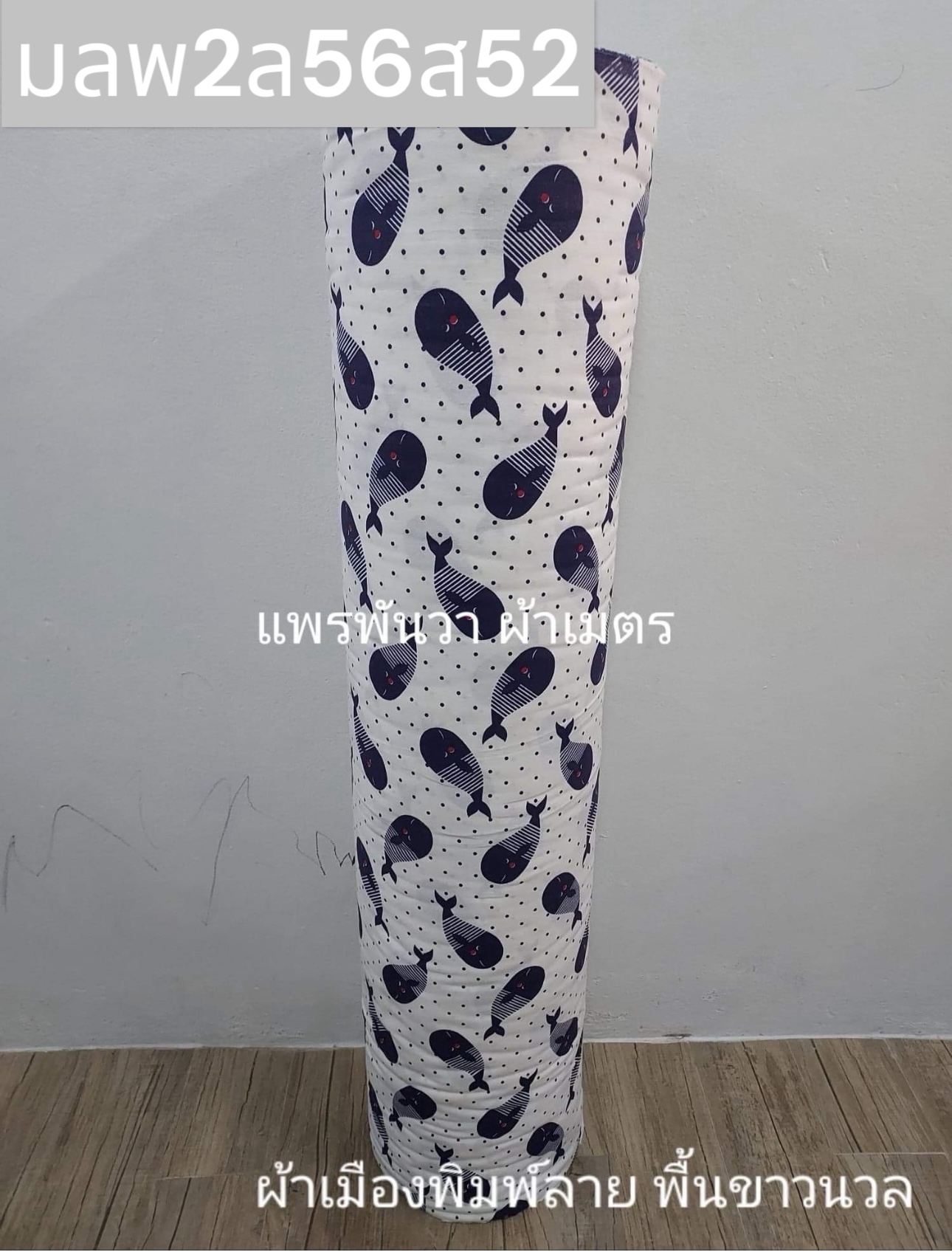 ผ้าเมืองพิมพ์ลาย-พื้นขาว พื้นขาวนวล ลายปลาวาฬ สีกรม