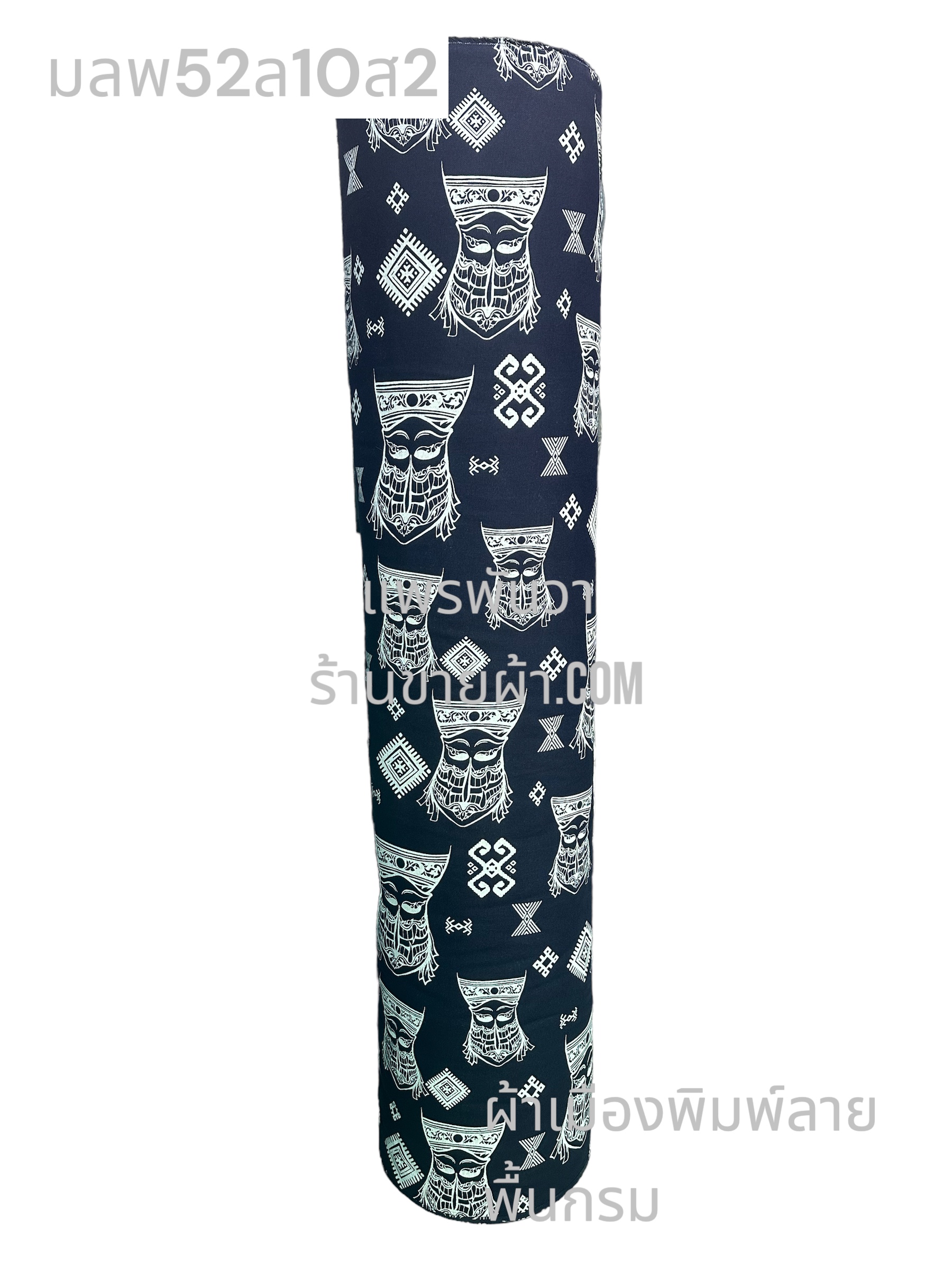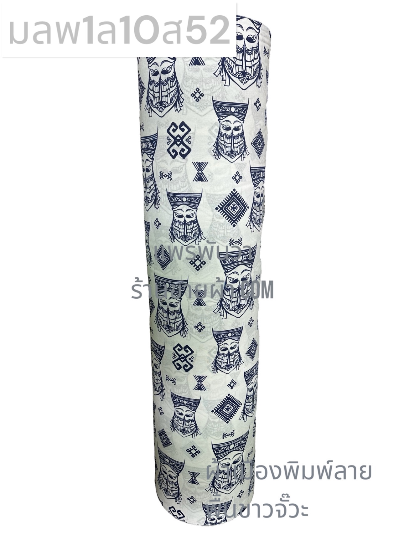 ผ้าเมืองพิมพ์ลาย-พื้นขาว พื้นขาวจั๊วะ ลายผีตาโขน สีกรม