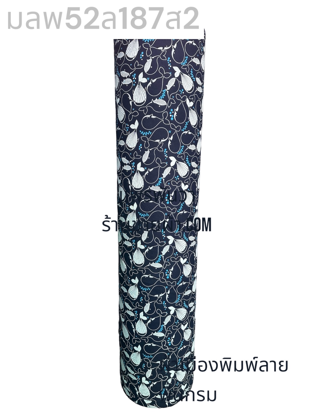 ผ้าเมืองพิมพ์ลาย-พื้นสี พื้นกรม ลายฝูงปลาวาฬ สีขาวนวล