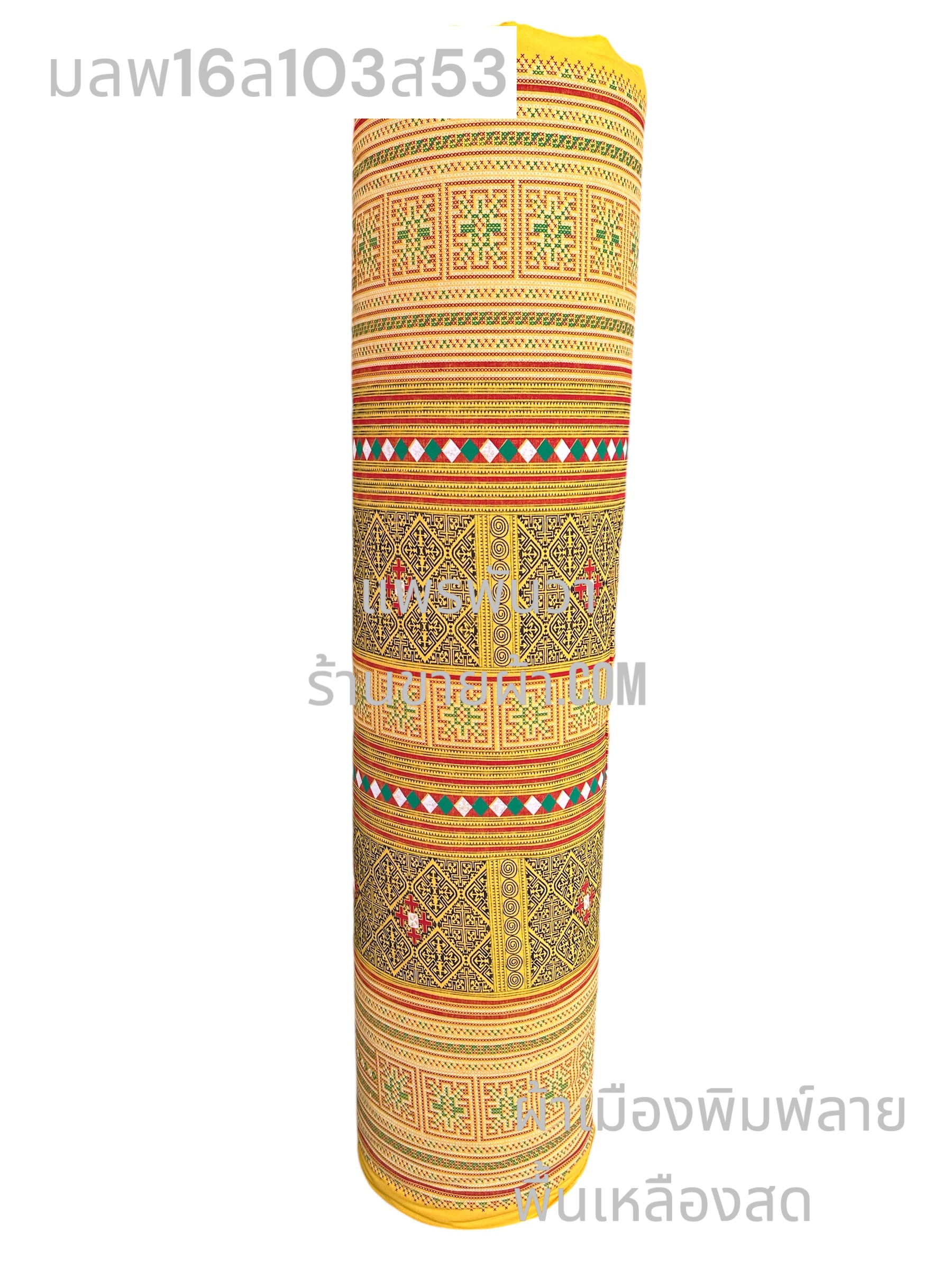 ผ้าเมืองพิมพ์ลาย-พื้นสี พื้นเหลืองสด ลายม้งใหม่ สีดำ