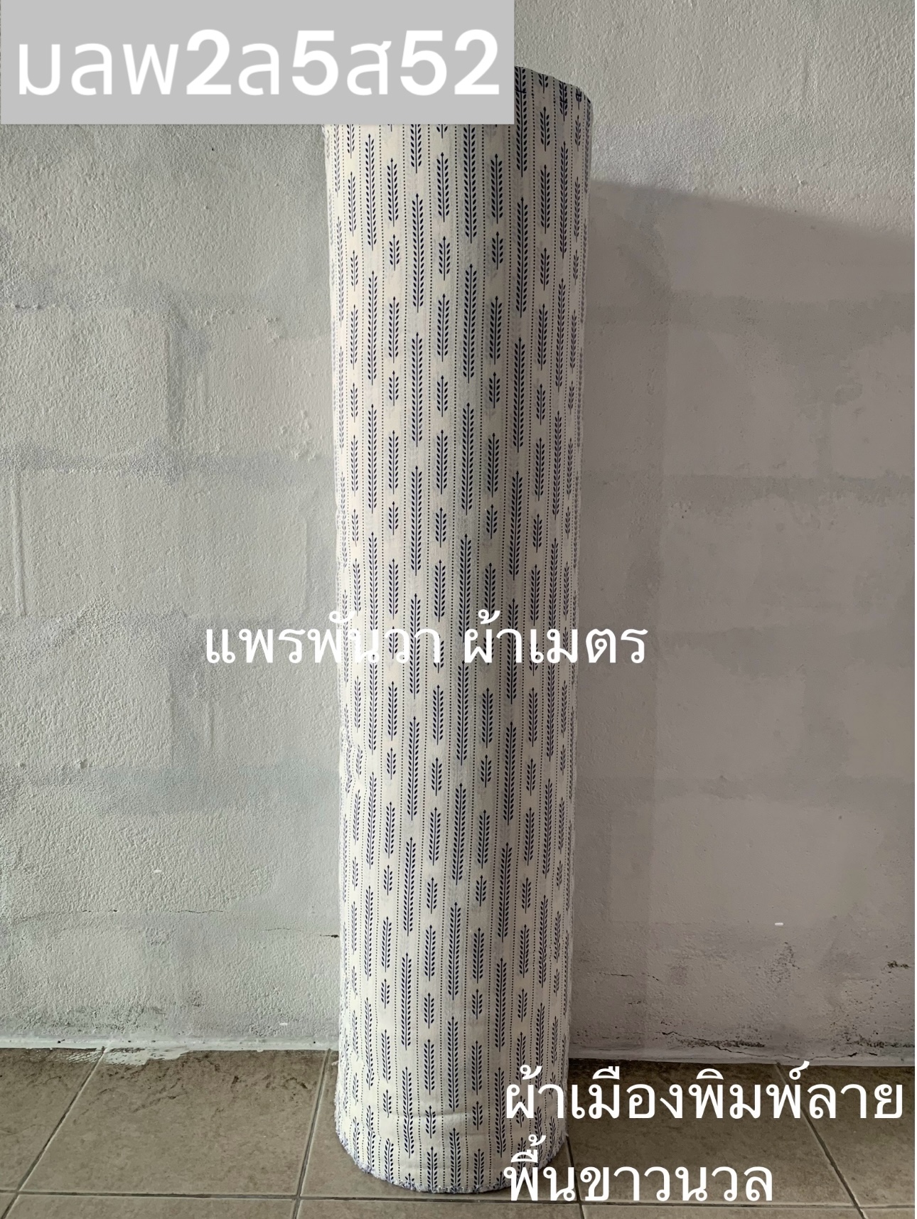 ผ้าเมืองพิมพ์ลาย-พื้นสี พื้นกรม ลายรวงข้าว สีขาวนวล