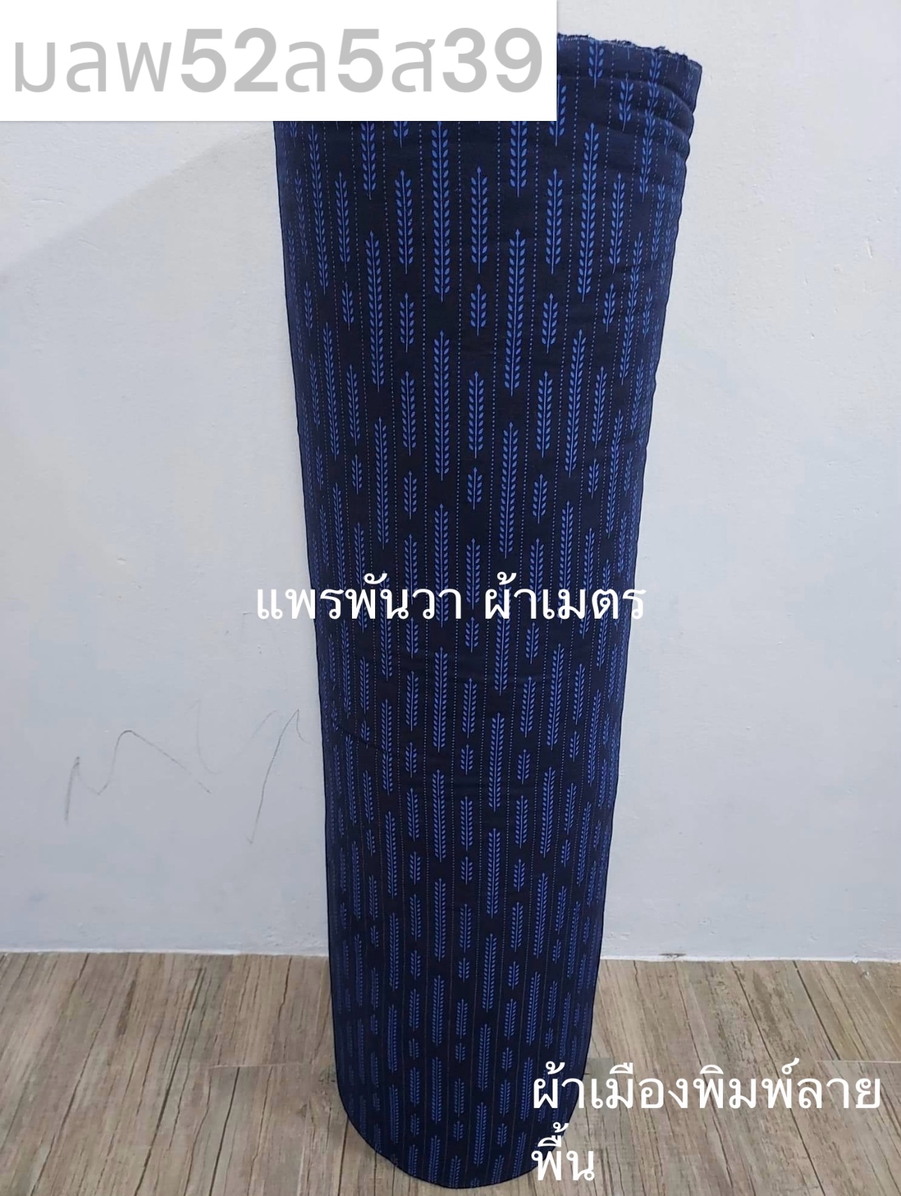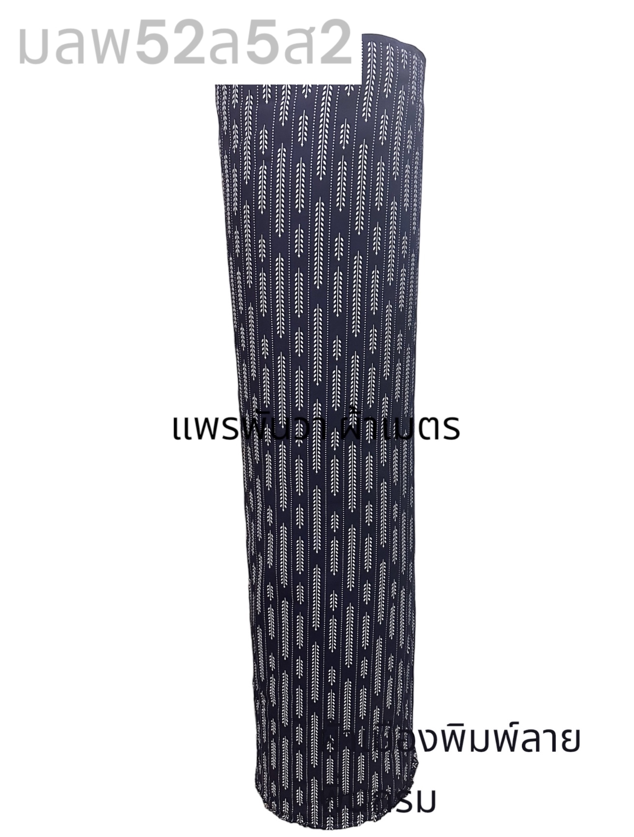 ผ้าเมืองพิมพ์ลาย-พื้นขาว พื้นขาวนวล ลายรวงข้าว สีกรม