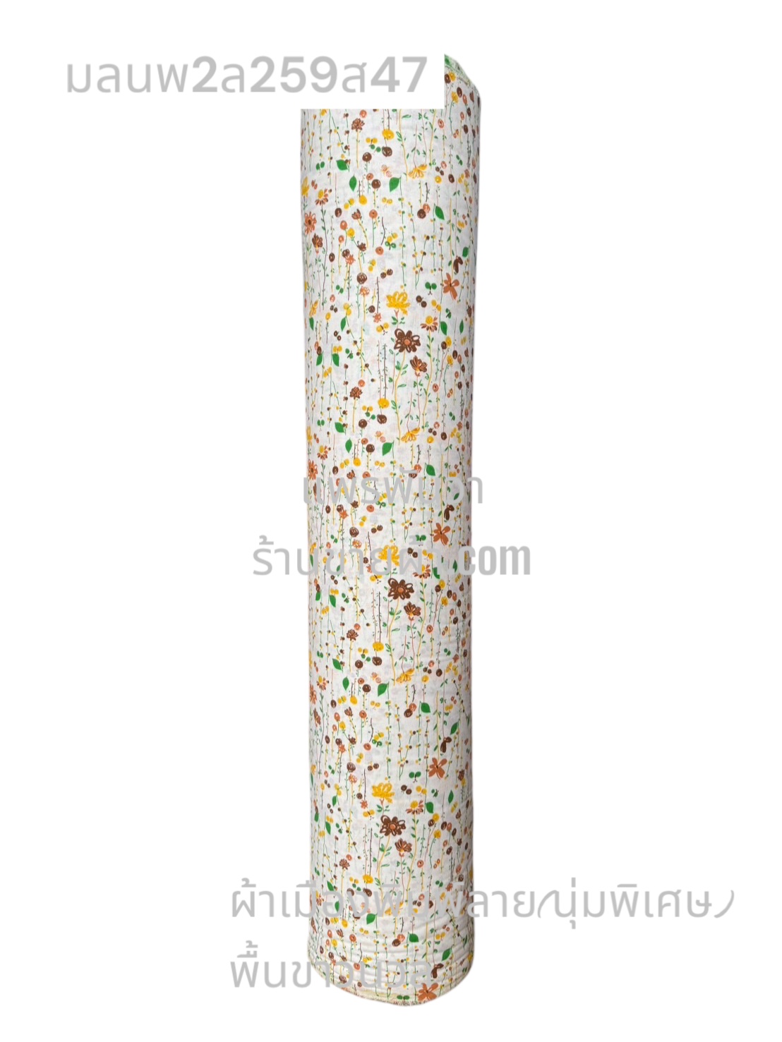 ผ้าเมืองพิมพ์ลาย(นุ่มพิเศษ)พื้นขาว พื้นขาวนวล ลายลายดอกดาหลา สีน้ำตาลสนิม