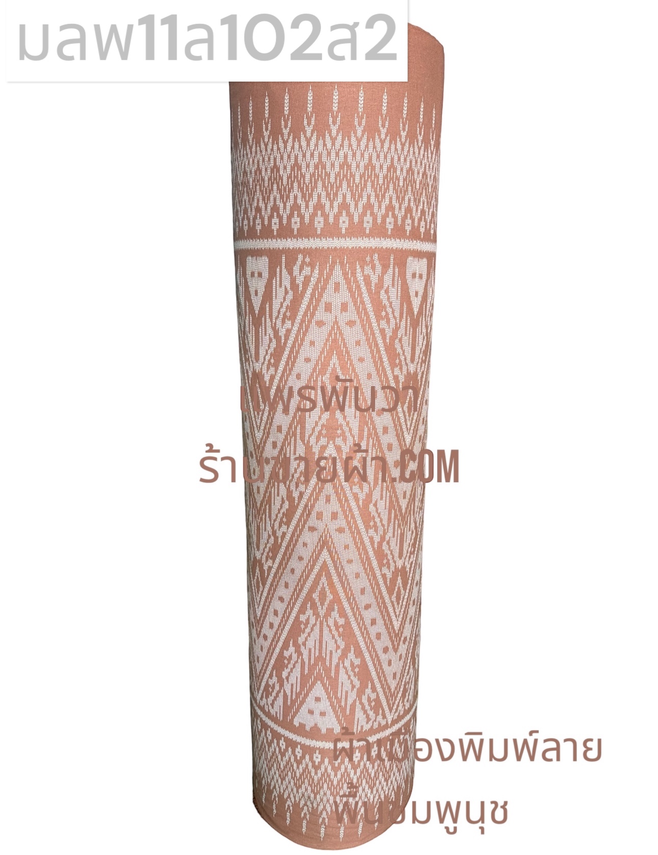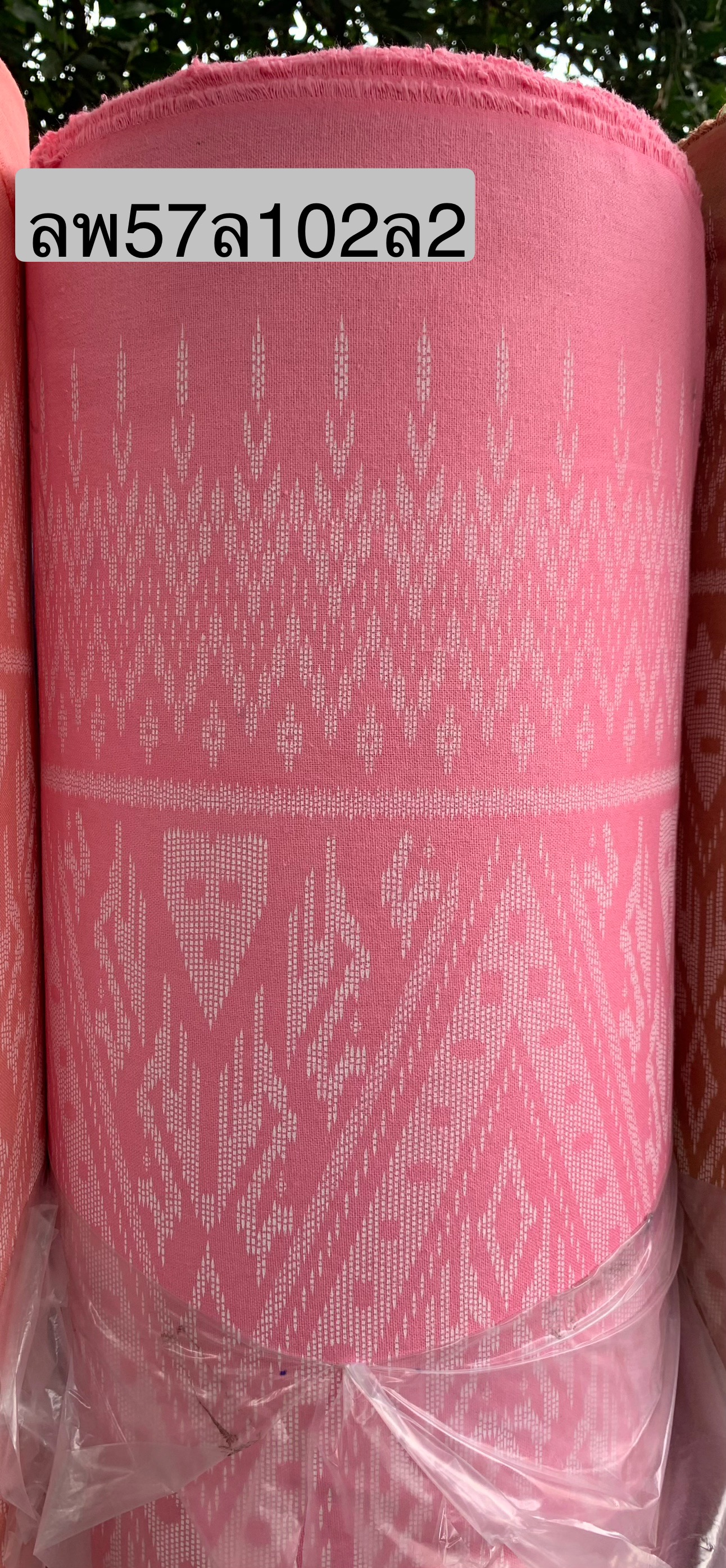 ผ้าเมืองพิมพ์ลาย-พื้นสี พื้นชมพูกะปิ ลายลิซ่า สีขาวนวล