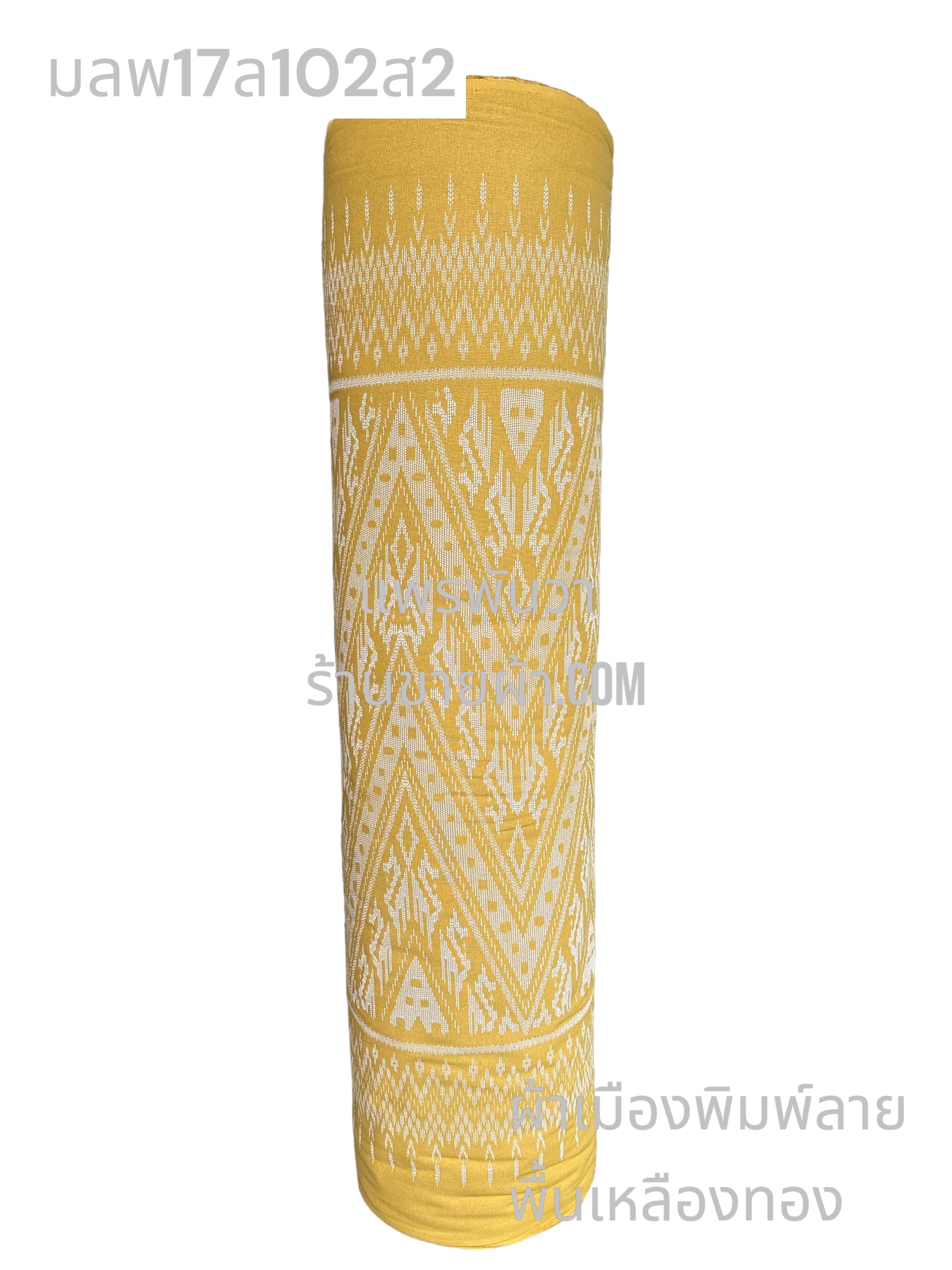 ผ้าเมืองพิมพ์ลาย-พื้นสี พื้นเหลืองทอง ลายลิซ่า สีขาวนวล