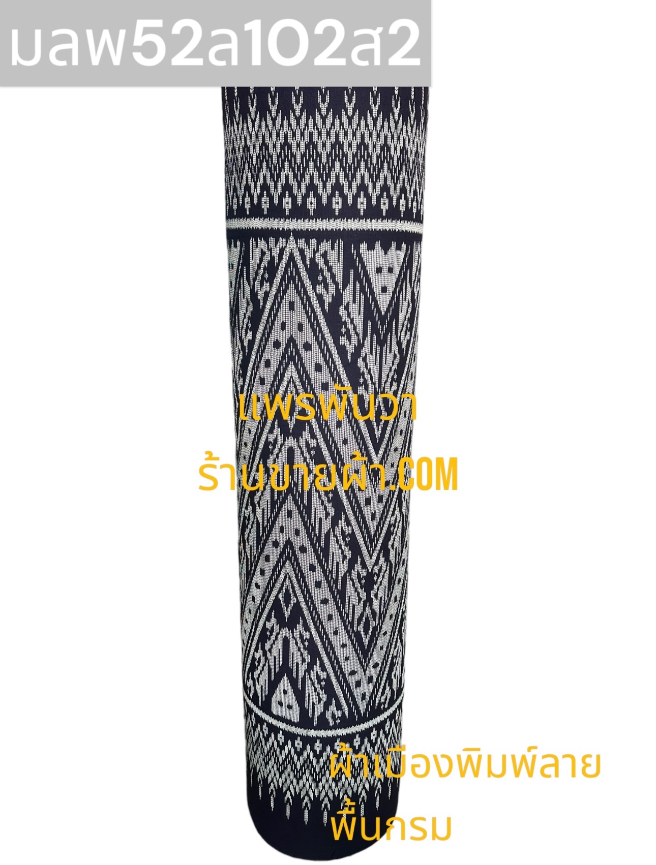 ผ้าเมืองพิมพ์ลาย(นุ่มพิเศษ)พื้นดำ พื้นดำ ลายลิซ่า สีขาวนวล