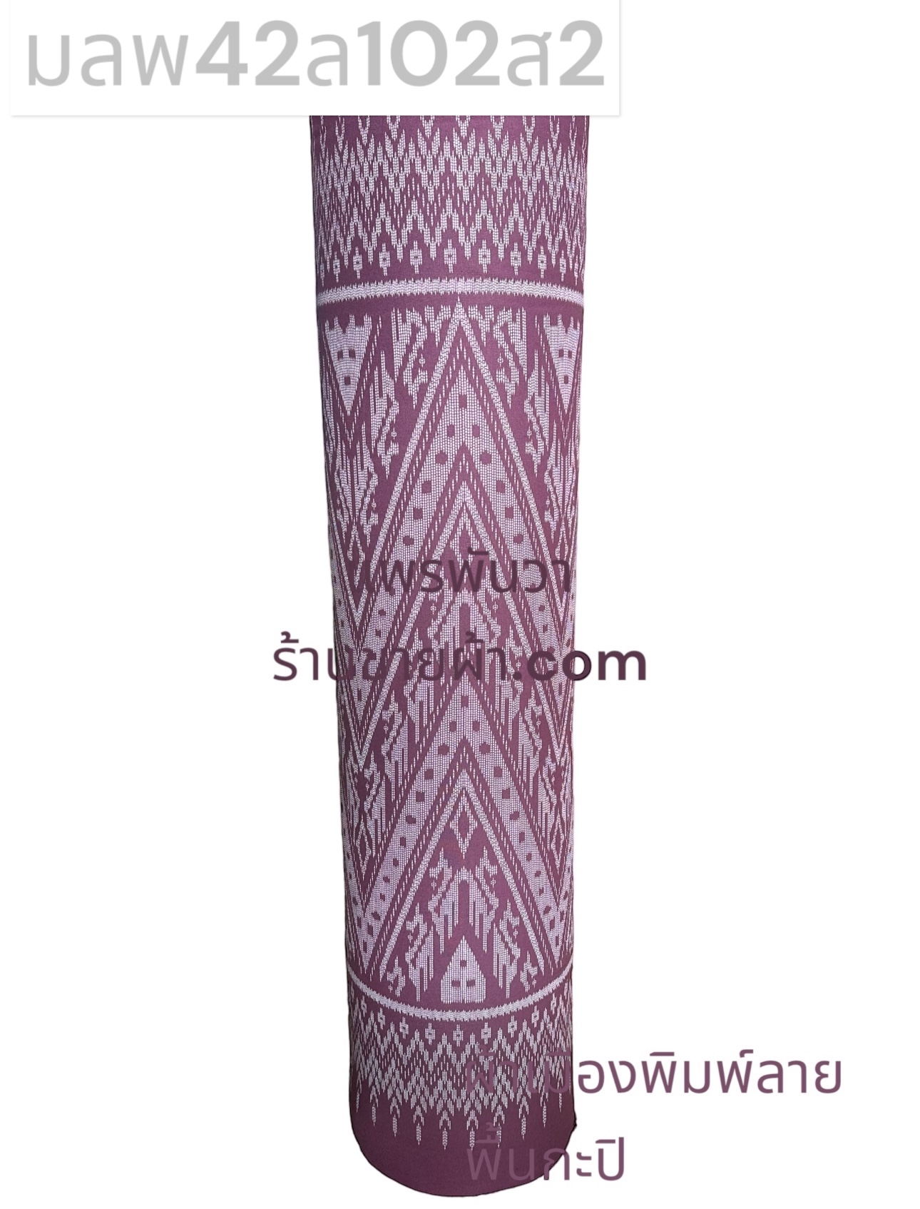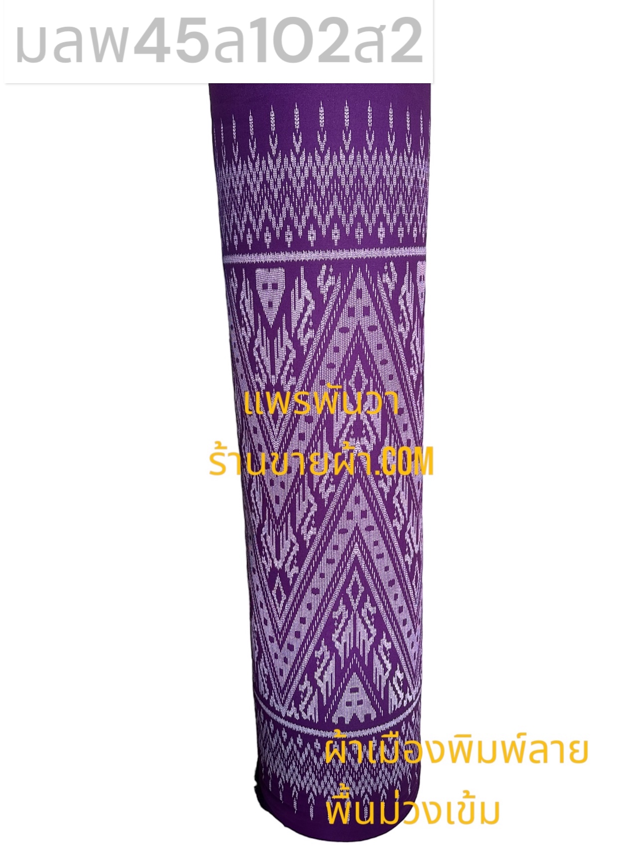 ผ้าเมืองพิมพ์ลาย-พื้นสี พื้นม่วงเข้ม ลายลิซ่า สีขาวนวล