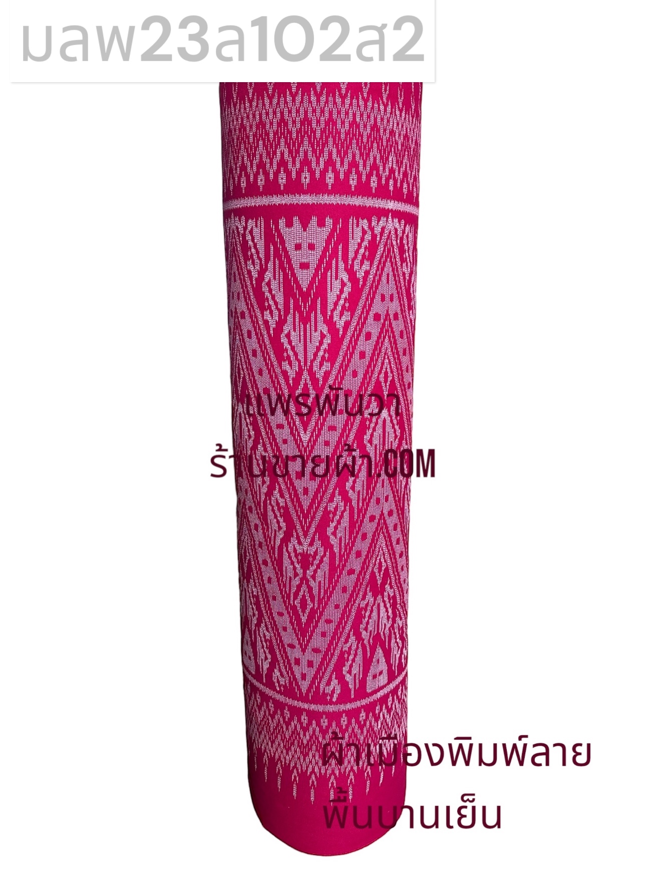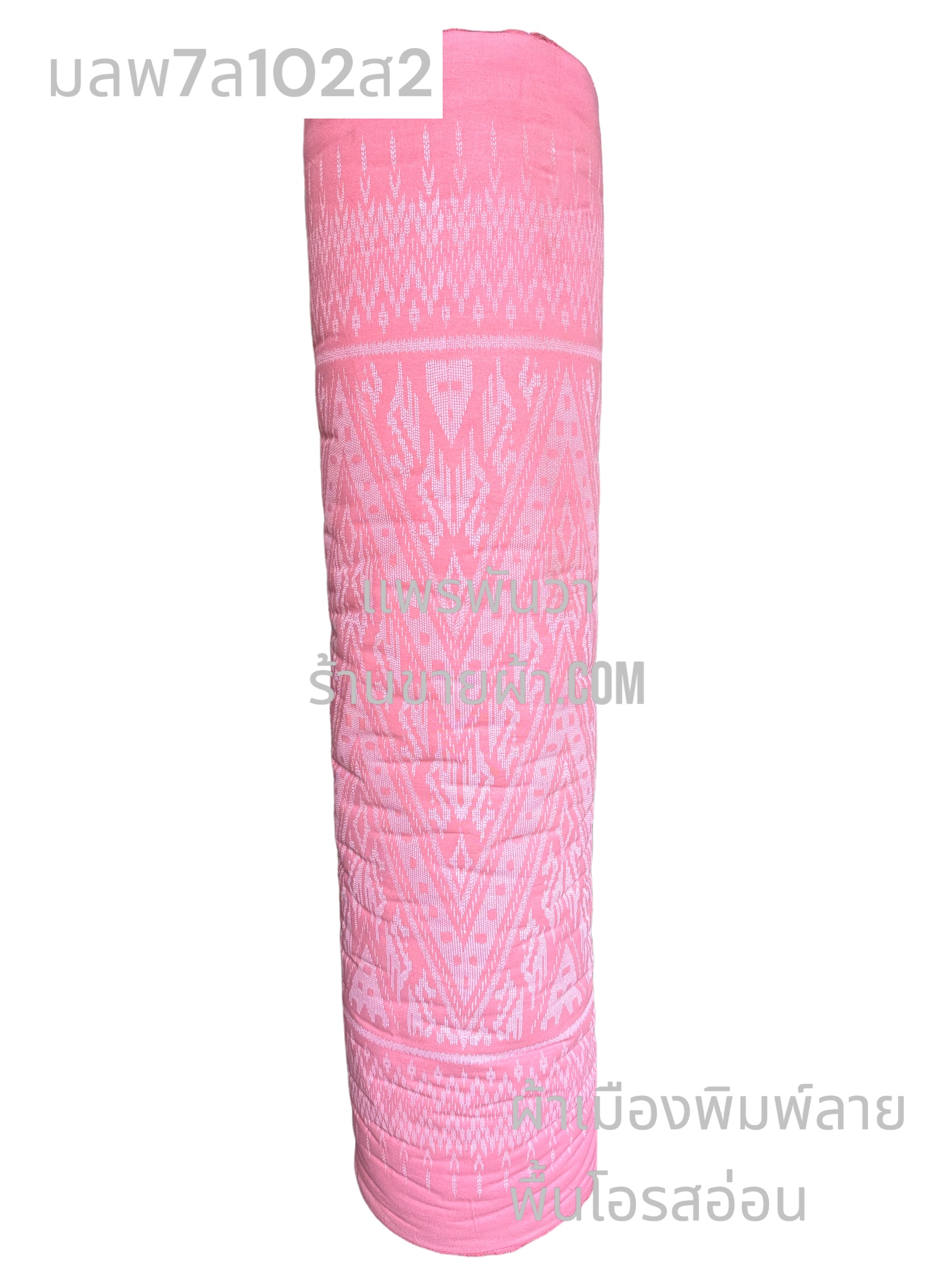 ผ้าเมืองพิมพ์ลาย-พื้นสี พื้นชมพูหวาน ลายลิซ่า สีขาวนวล