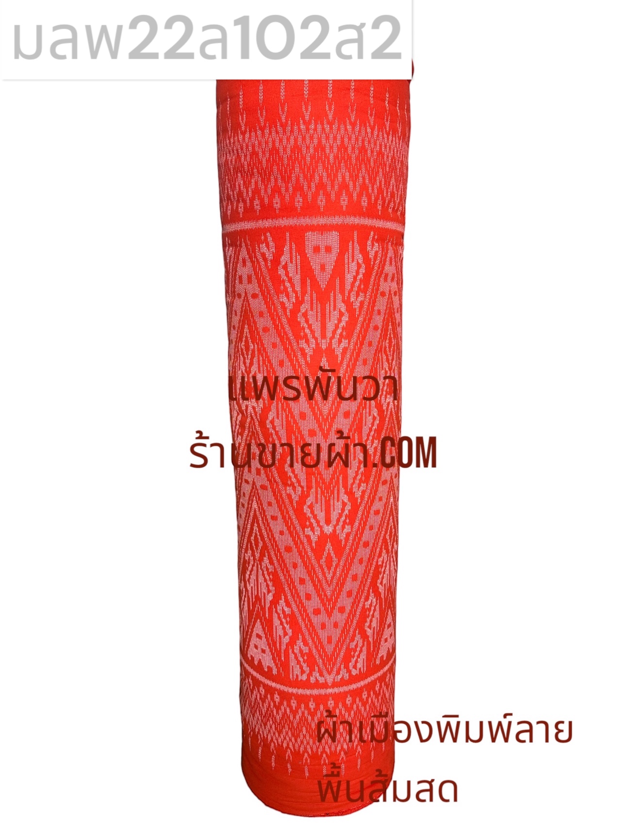 ผ้าเมืองพิมพ์ลาย-พื้นสี พื้นส้มสด ลายลิซ่า สีขาวนวล