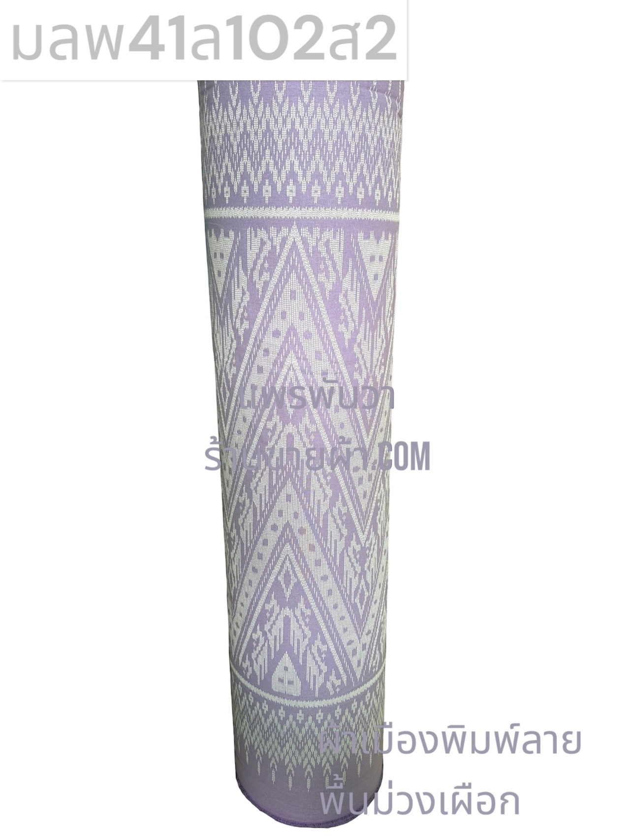 ผ้าเมืองพิมพ์ลาย-พื้นสี พื้นม่วงเผือก ลายลิซ่า สีขาวนวล