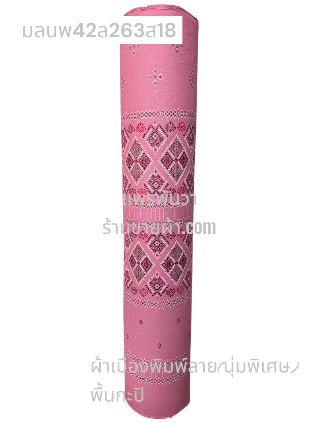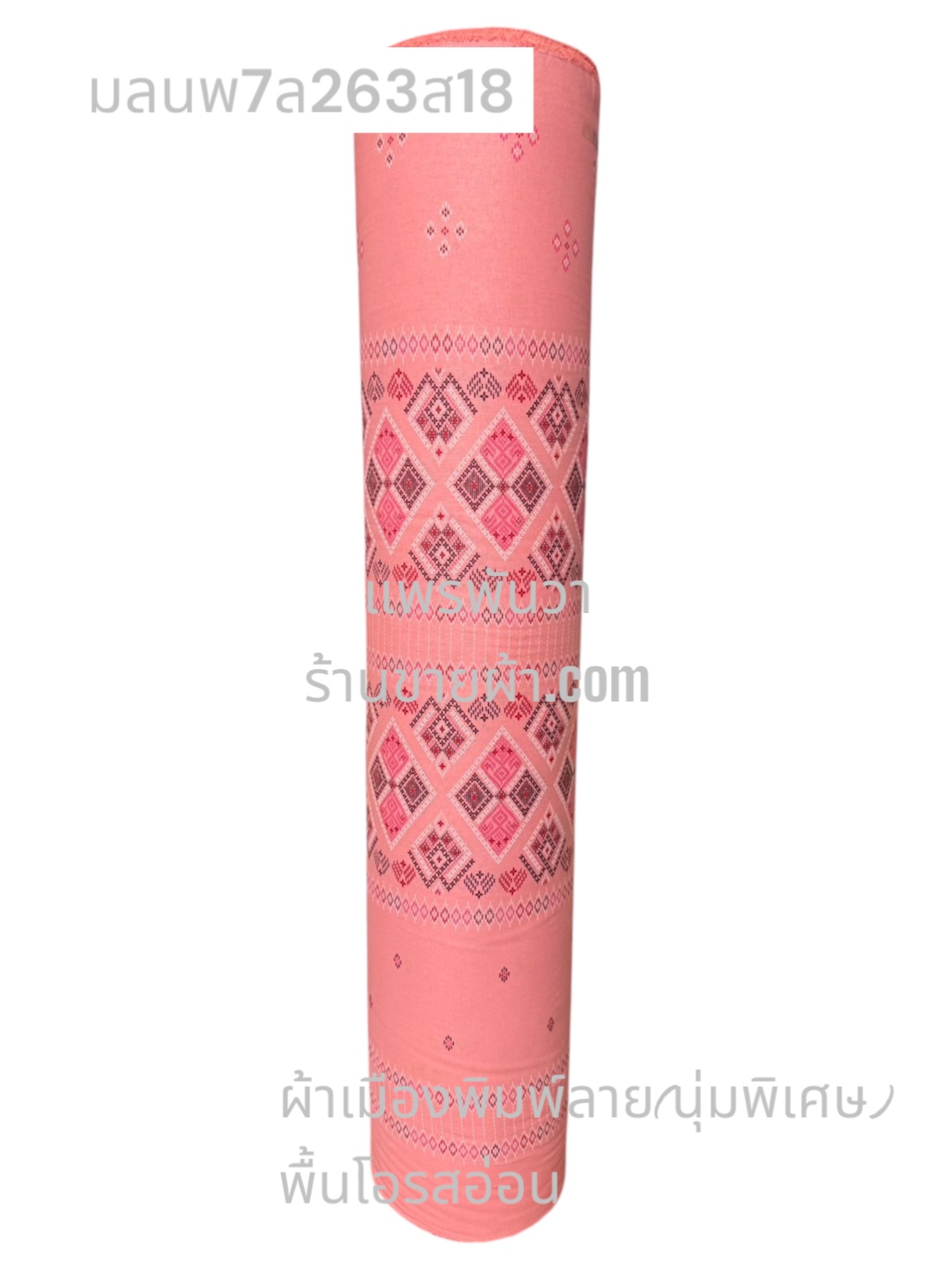 ผ้าเมืองพิมพ์ลาย(นุ่มพิเศษ)พื้นสี พื้นชมพูกะปิ ลายเพชรชมพู สีชมพูหวาน