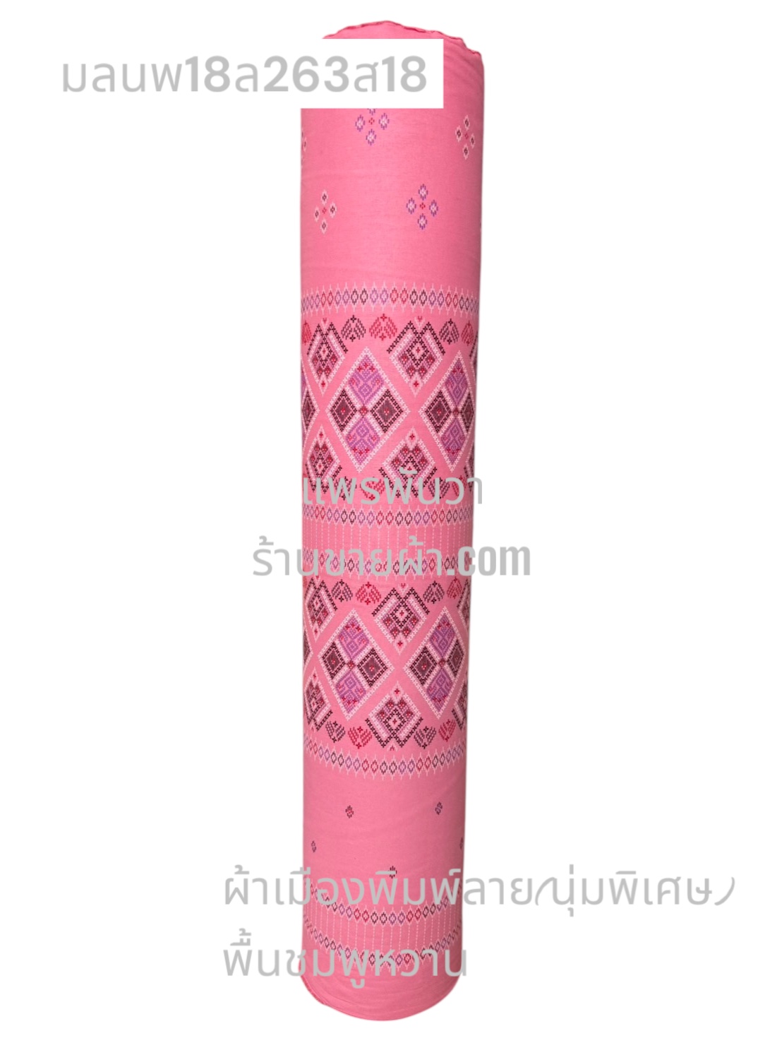 ผ้าเมืองพิมพ์ลาย(นุ่มพิเศษ)พื้นสี พื้นชมพูหวาน ลายเพชรชมพู สีชมพูหวาน